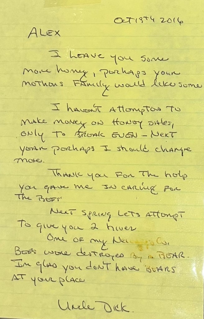 My uncle, Dick Miller, is the reason I ever stepped into this world. He didn’t just teach me how to keep bees—he taught me patience, respect for nature, and what it means